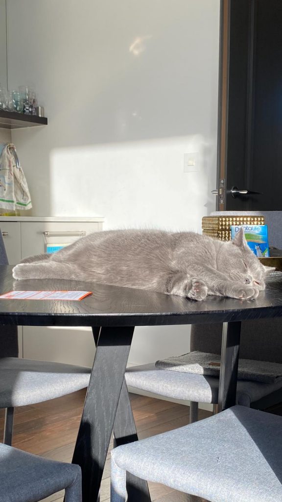 “Syd is still a lovely boy, his new thing is chasing birds and pigeons on the balcony. Nobody can come close to his territory”.