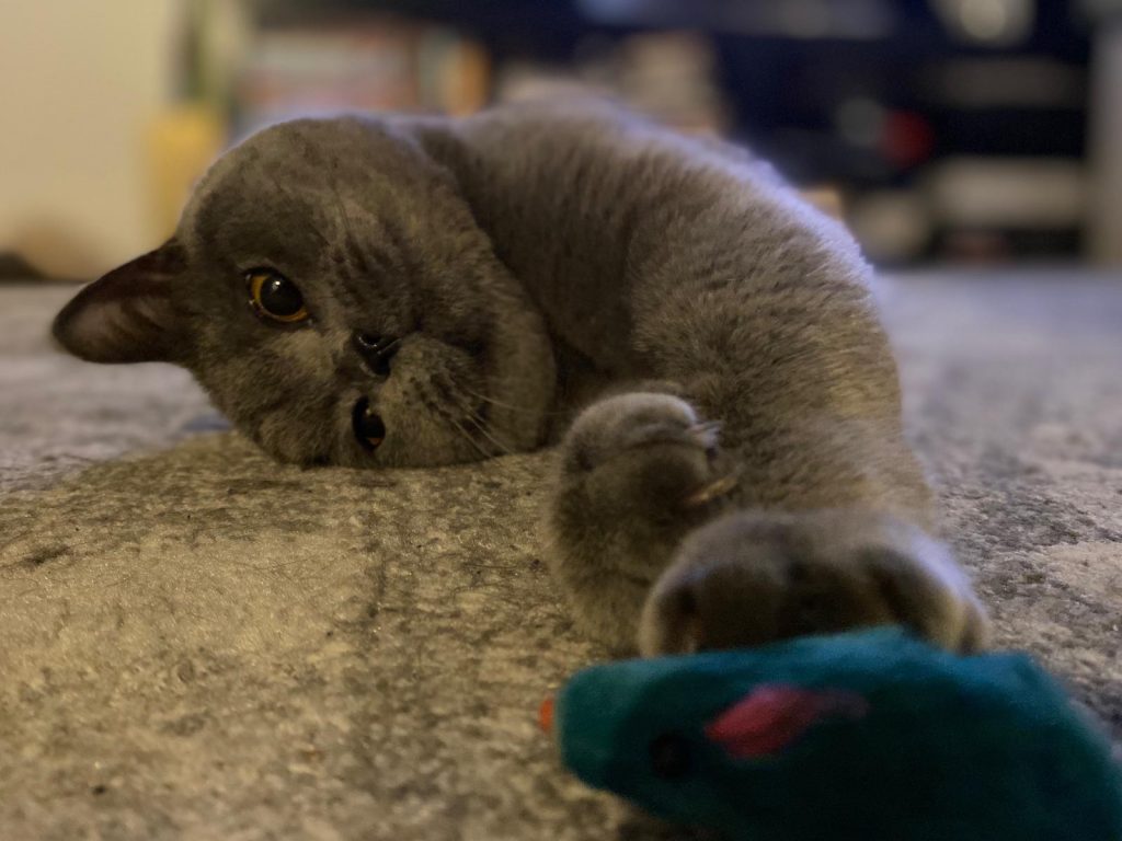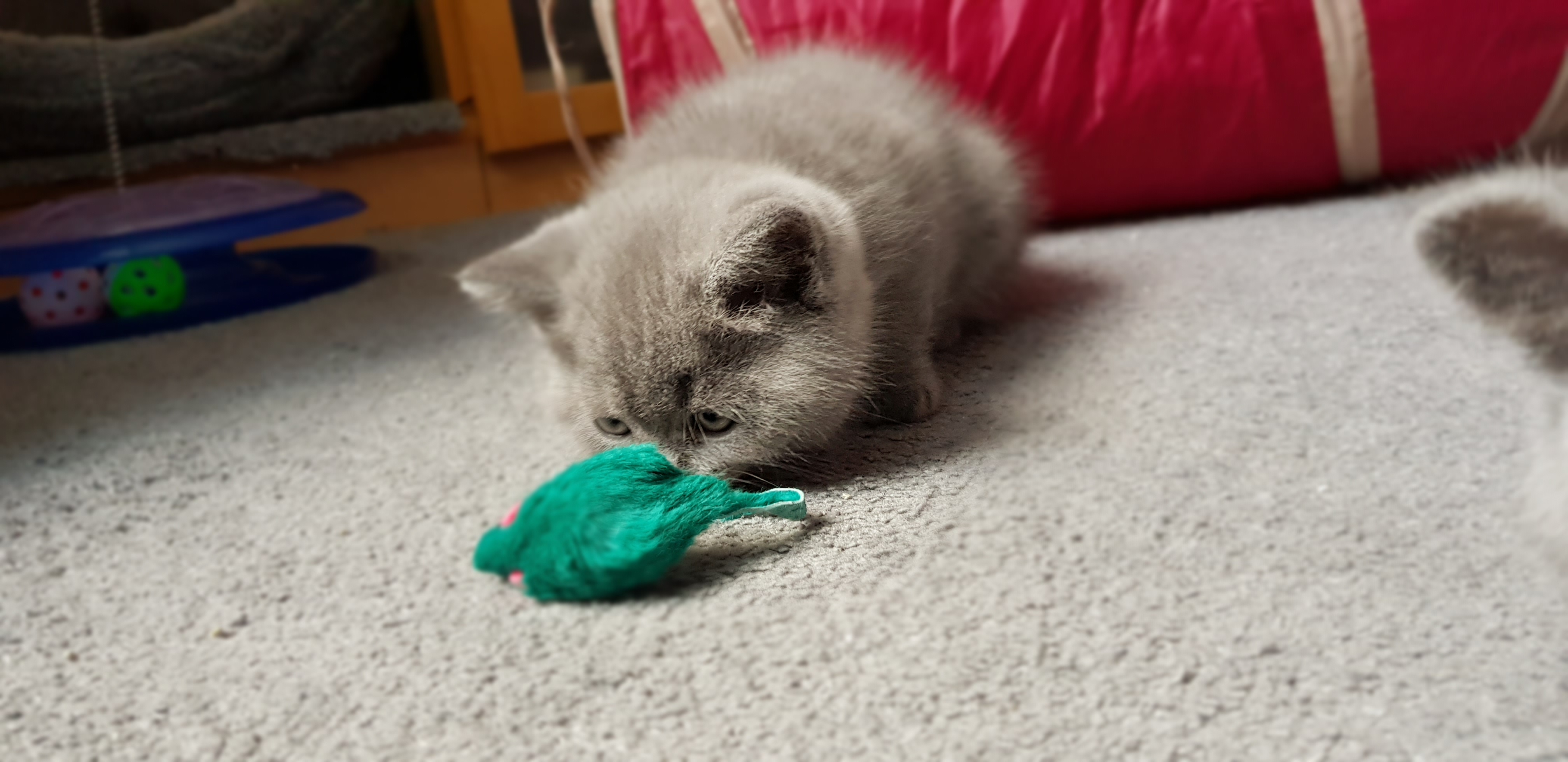 “It was Syd’s birthday last week and as a present for himself he managed to find his green mouse which we thought was long gone. Syd is still growing and we managed to find his favourite cat food – Thrive, definitely worth a shot.”