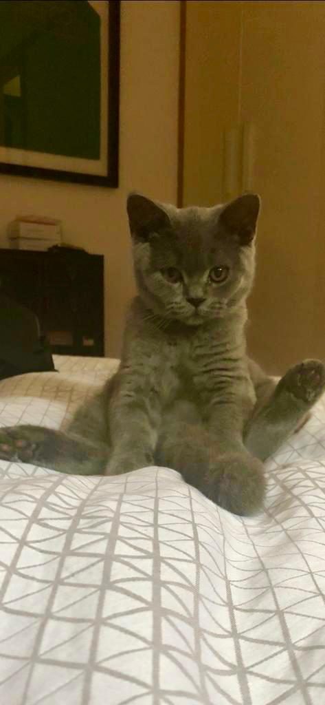 He is getting neutered soon and can start going out. He still sleeps in our laps and has a lovely temperament.