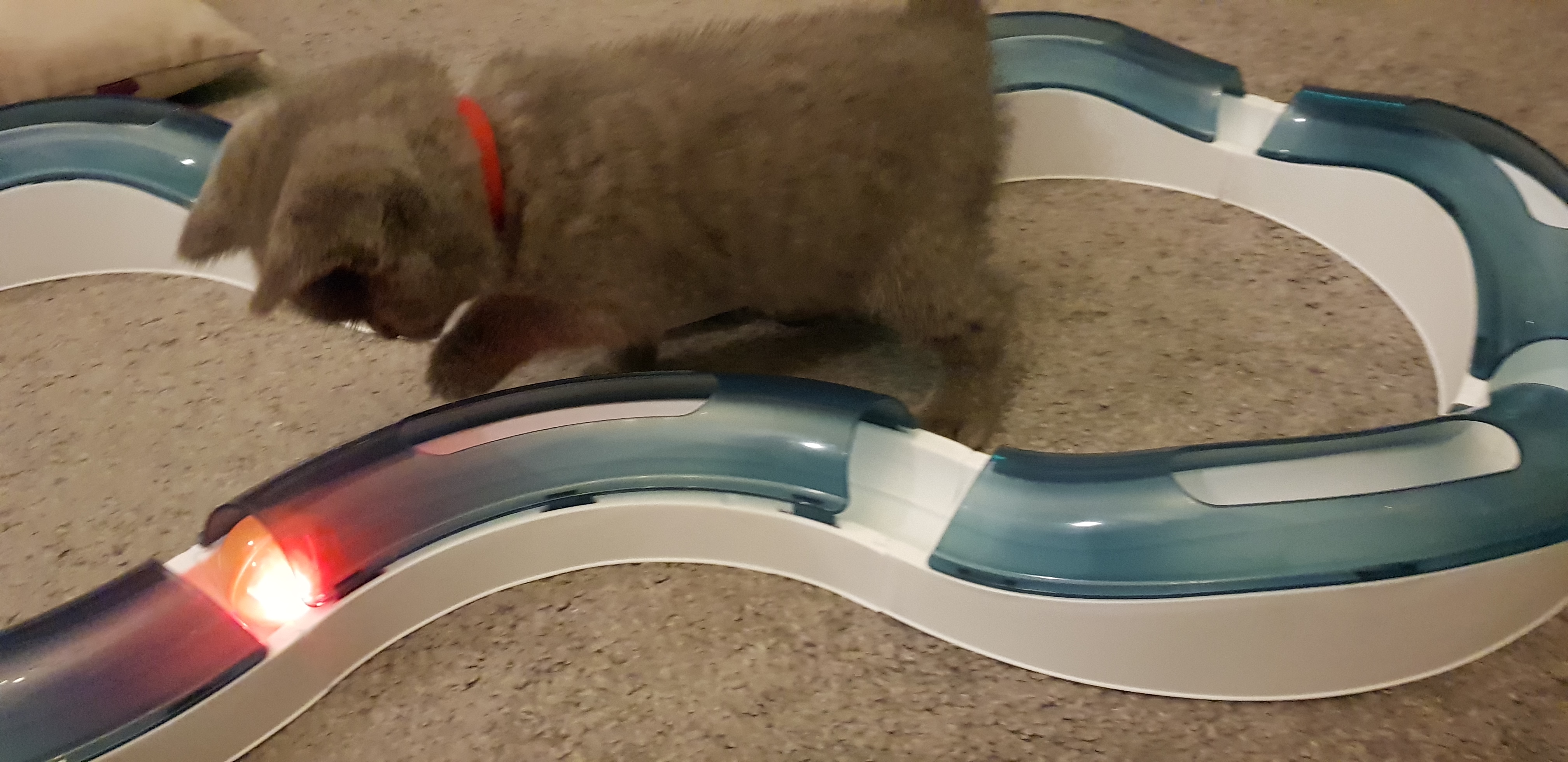 He wrestles, charges about, climbs fearlessly, devours both wet and dry food before scampering off to the litter tray.