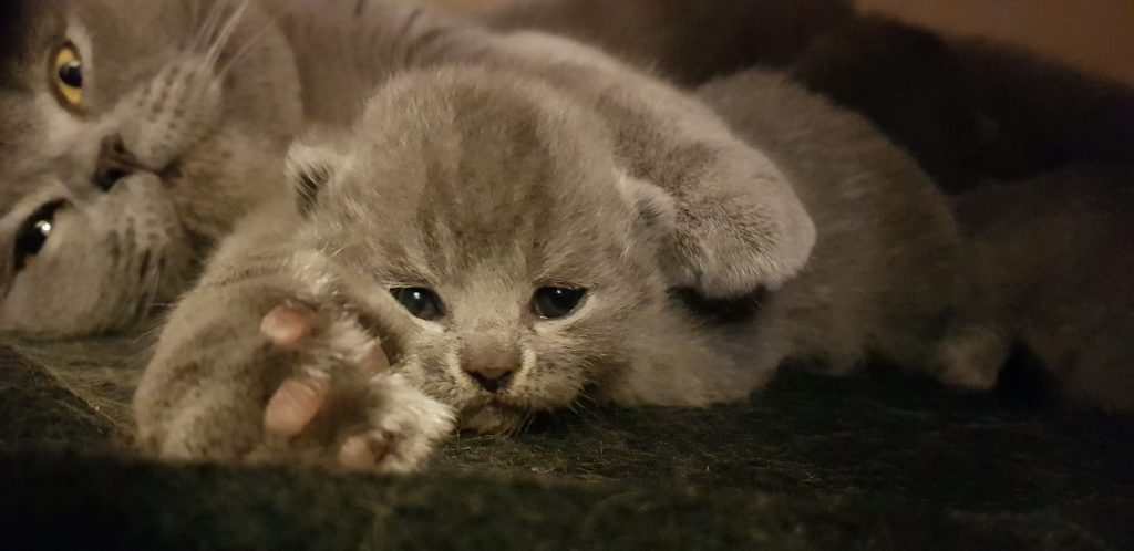 I’ve always admired their temperament and their distinctive look. We had just got two rescue kittens who had very much attached themselves to my wife and daughter when the Cosmo Valentine litter arrived, and as soon as able we came to see about getting the kitten I’d always wanted.