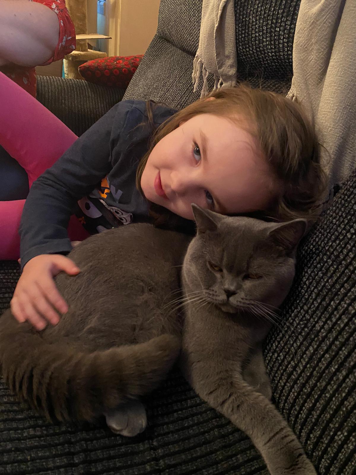 He immediately bonded with my daughter, who was five at the time, and ever since have firmly been best friends. They are completely inseparable, and he has such a lovely temperament with her. He is patient, he lets her pick him up and carry him around (despite being as big as she is) and he does it with a loving gaze at her throughout.