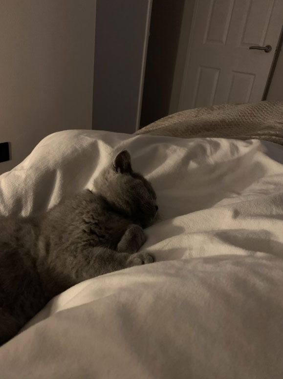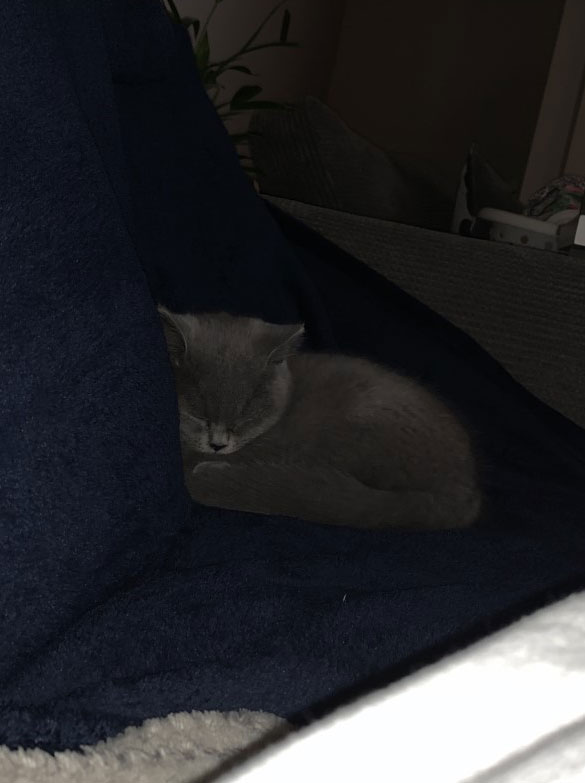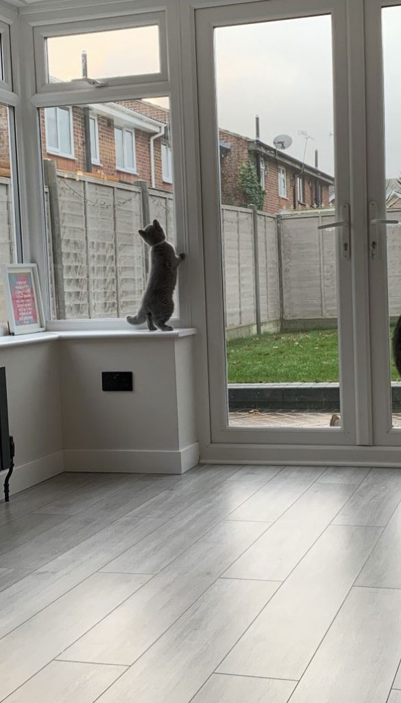 We experienced our first week of work from home. Jupiter loves to play cat and ‘mouse’ and often jumps up and sits directly in front of the screen preventing me from working. Colleagues love him! And once he’s said hello or had a play he’s happy to curl up on top of his crate and have a snooze.