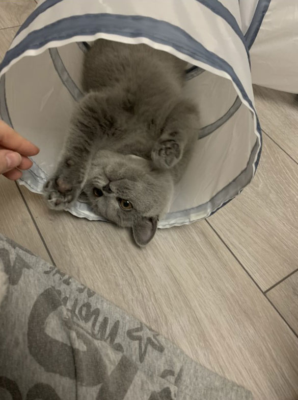 He’s loved all of his toys so far. As predicted his favourite is the feather on the string, but he does love his kicker too! He’s settled really well and seems to be happy being home with me.