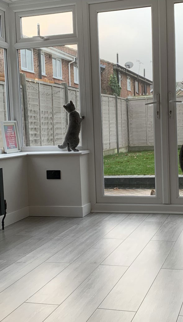 He also saw his first proper snow fall since being home and he was obsessed. He sat at the window for hours watching the flakes fall only jumping down for a cuddle or catnap.